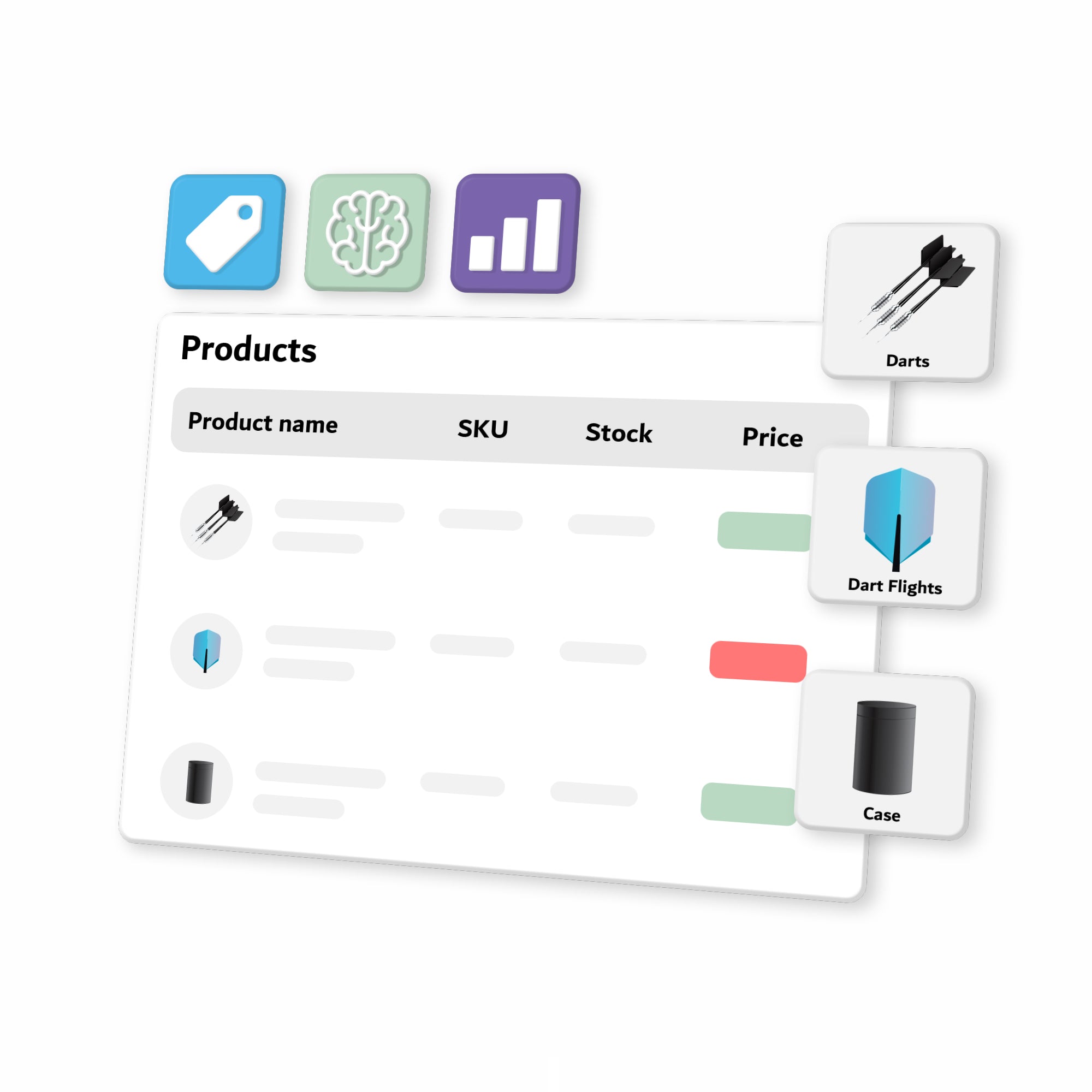 We created a structured database to centralize all product information in an organized and efficient way. This allows Dartstime to better manage and organize its extensive product catalog.