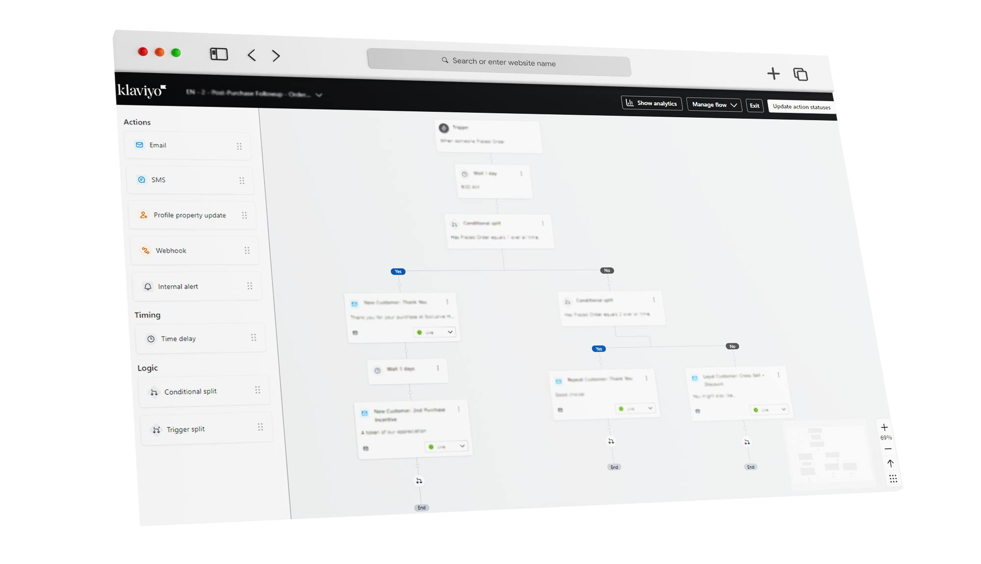Using Klaviyo, we developed a series of sophisticated email marketing flows to keep customers engaged and informed about new products, promotions, and updates. These flows were designed to target various customer segments, such as new visitors, returning customers, and those with abandoned carts. Each email was personalized based on customer behavior and preferences, which helped increase open and click-through rates.